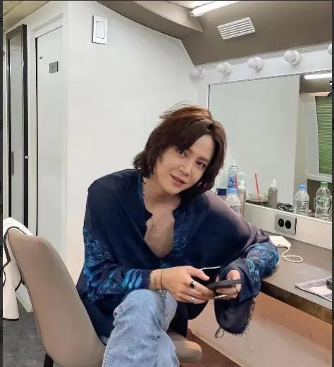 披肩长发,加上发际线后移,还有眼周围的皱纹确实有些拉低颜值,和前几年那个意气风发的男人相比,区别太大。