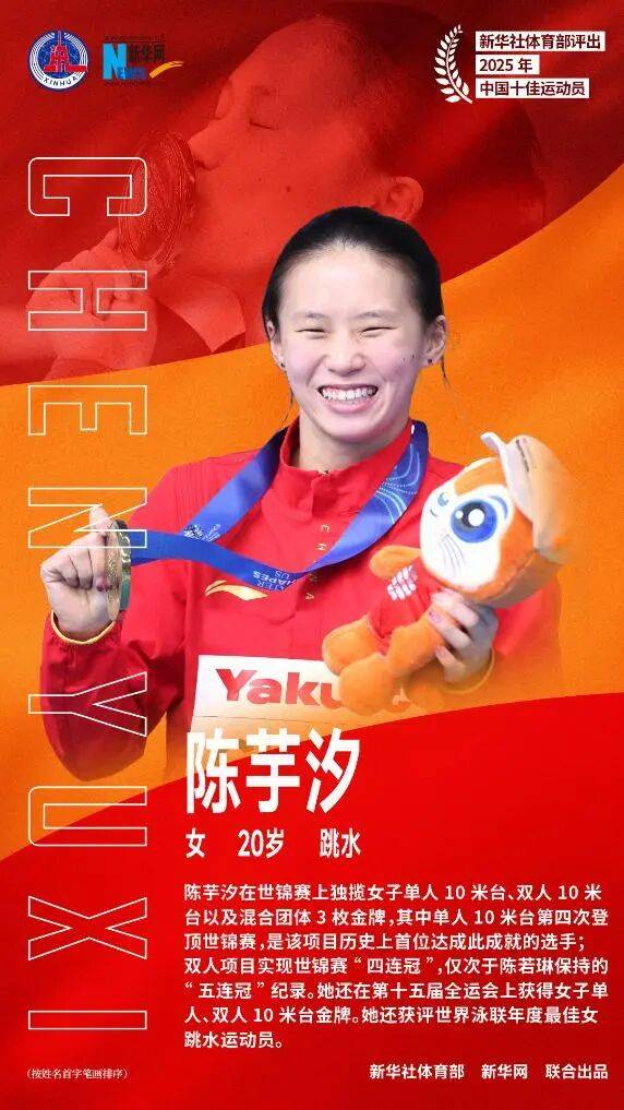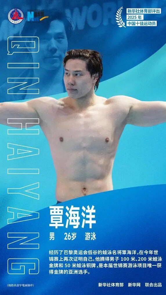 据新华社消息新华社体育部近日评出2025年中国十佳运动员。各运动员主要成就及贡献如下(按姓名首字笔画排序):