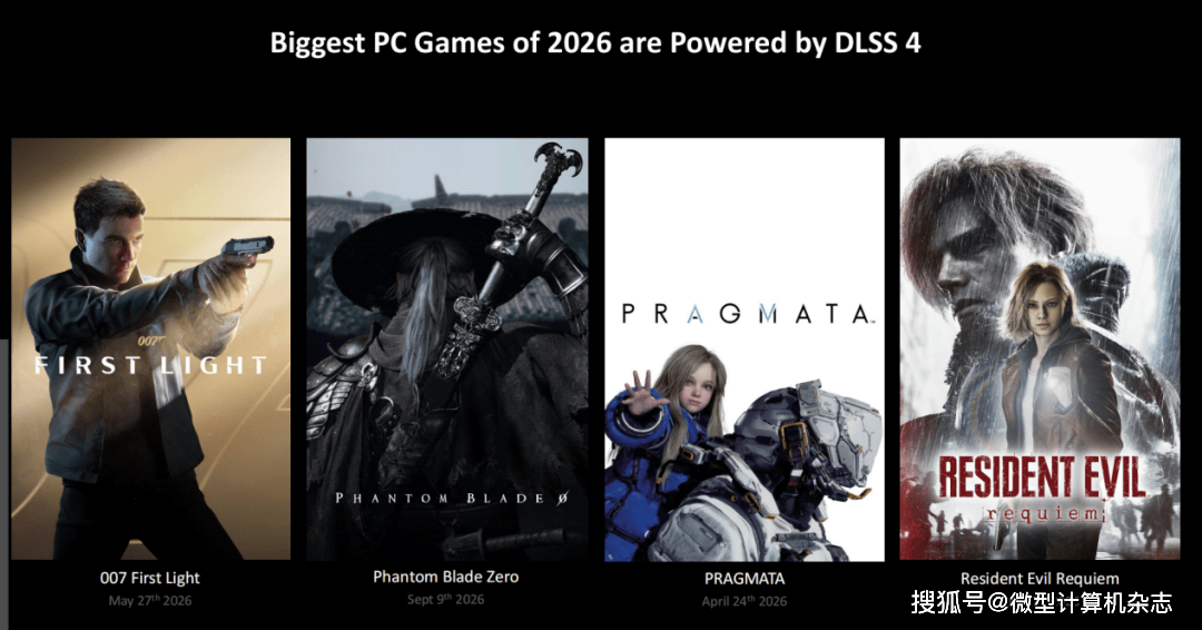NVIDIA还在会上公布了一批支持DLSS 4.5的,将于2026年内发布的重磅游戏,包括《生化危机:安魂曲》《影之刃:零》《007:初露锋芒》以及《PRAGMATA》。