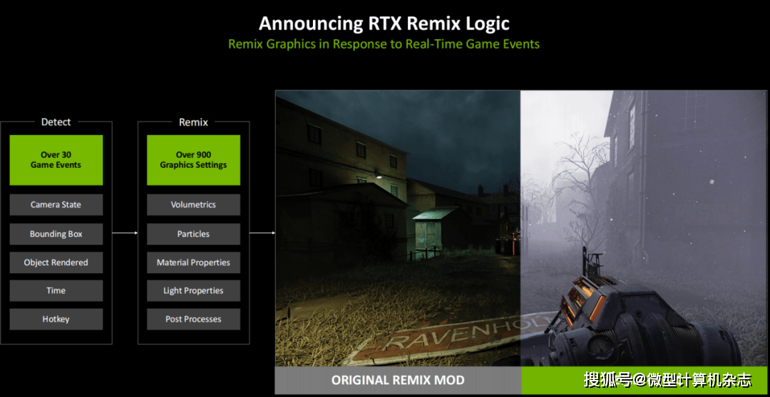 CES 2026上NVIDIA发布了RTX Remix的生态升级——RTX Remix Logic,将于2026年1月上线。全新的RTX Remix Logic的核心能力在于基于实时游戏事件动态调整Remix图形效果。RTX Remix Logic内置30+的游戏内事件检测机制,包括但不限于相机状态、边界框、渲染对象、时间及热键触发等。同时,在触发检测之后,RTX Remix则会相应启动超过900项的具体图形渲染设置,包括体积光、粒子、材质属性、光照属性以及后期处理等。这样就能够对具体游戏的实时场景需求进行更准确、更逼真的渲染增强。