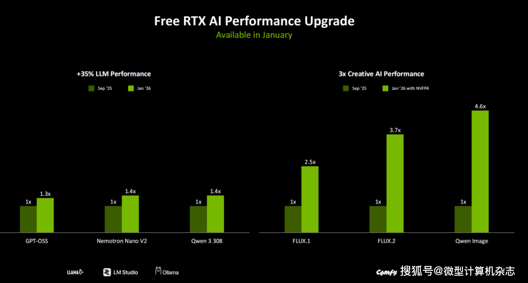 在CES 2026展会上,NVIDIA还就AI PC生态进行了重要的讲解,并更新了一基于RTX GPU的,与AI PC生态技术相关的升级与更新。